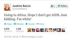 Sacco, Justine (@JustineSacco). 2013. “Going to Africa. Hope I don’t get AIDS. Just kidding. I’m white!” Twitter, December 20, 2013, 10:19 a.m. https://twitter.com/