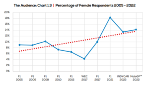 Research completed by Nielsen and Motorsport Network from 2005-2023 shows evidence of the difference Liberty Media have made to Formula One. The most recent survey was published in January of 2022, with over 160,000 participants, which made it the largest ever sports survey conducted. Burrows et al. say that the “most striking data” is the increase of female respondents from 2017 to 2021 from 10% in 2017 (appendix A.) to 18.3% in 2021, which equates to an increase of 83%. This data is in conjunction with the transfer of ownership of Formula One to Liberty Media. The report also states that 30 percent of the respondents to the research survey had been fans of Formula One for less than 5 years which is again, linked with the changes in ownership of Formula One and the “loosening of restrictions on social video for competitors and media (Burrows et al. 2023). 30% of motorsport fans access content through social media (Burrows et al. 2023), including Instagram, Twitter, and Facebook, with the official Formula One Instagram page amassing 28 million followers.