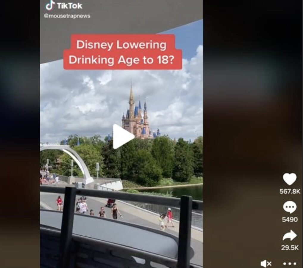 Figure 1: TikTok image misinforming public by stating that Disney World is reducing the legal drinking age to 18