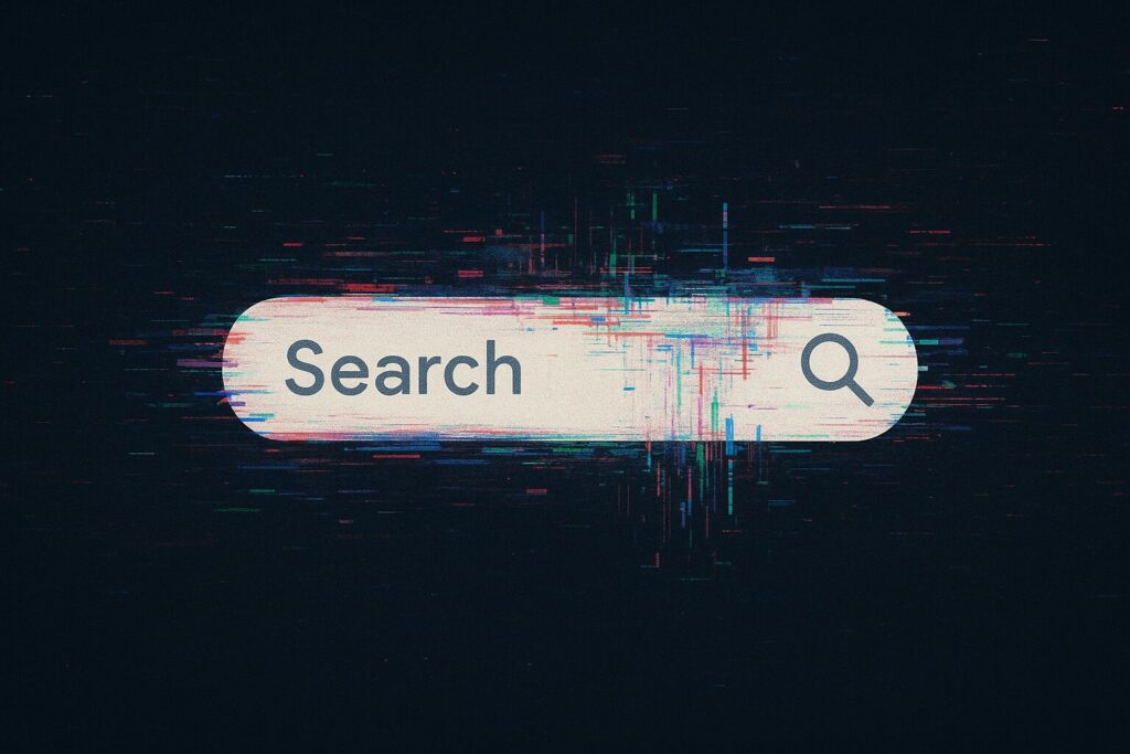 A person overwhelmed by glitching digital information, symbolising the chaos and misinformation found in unregulated online spaces.